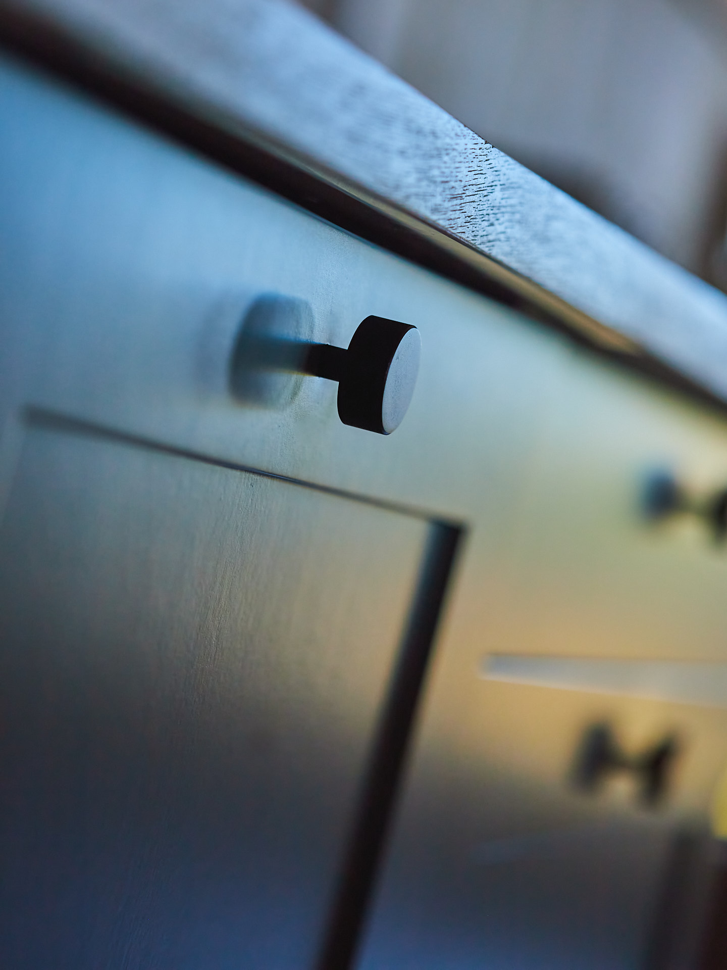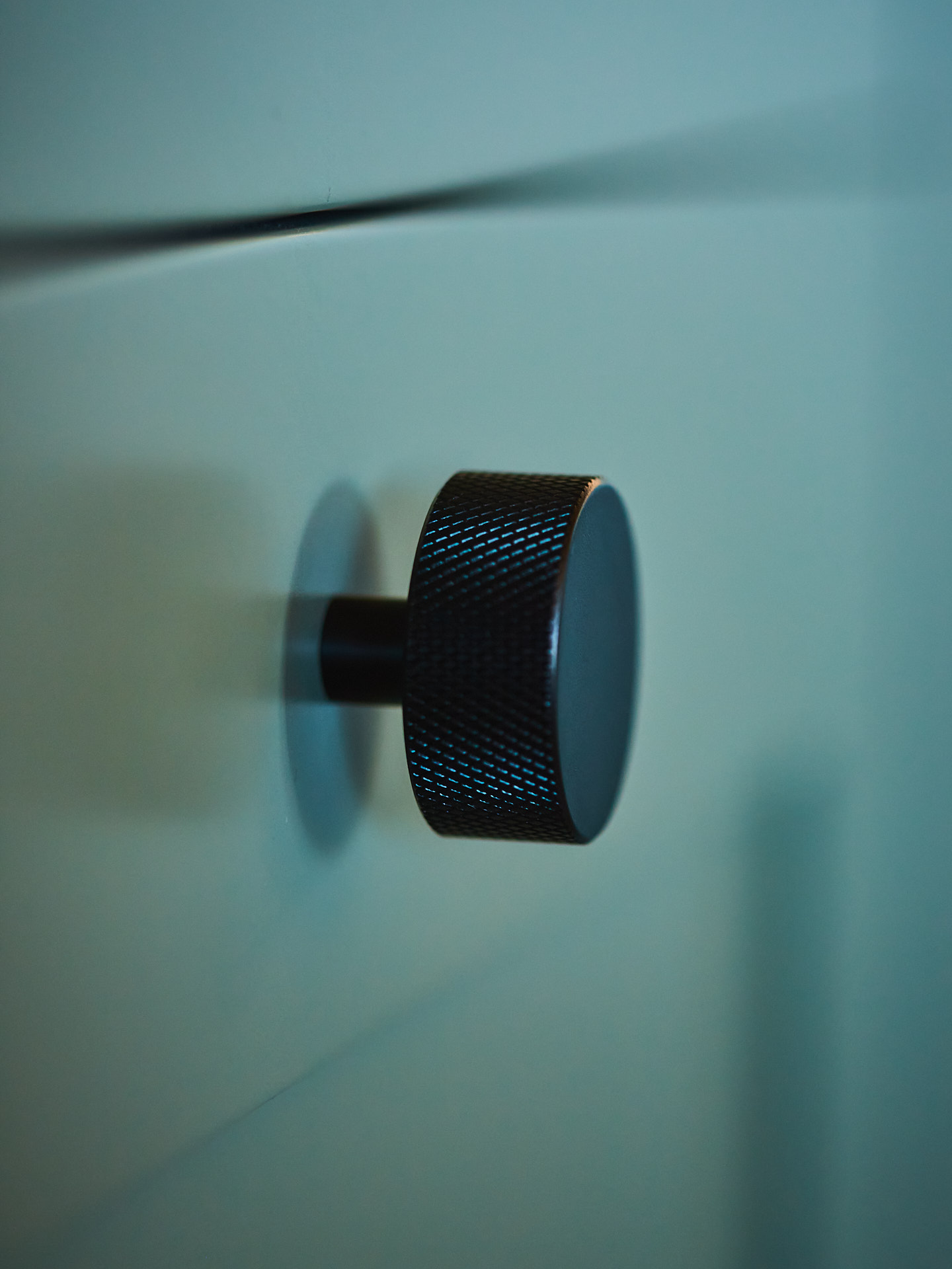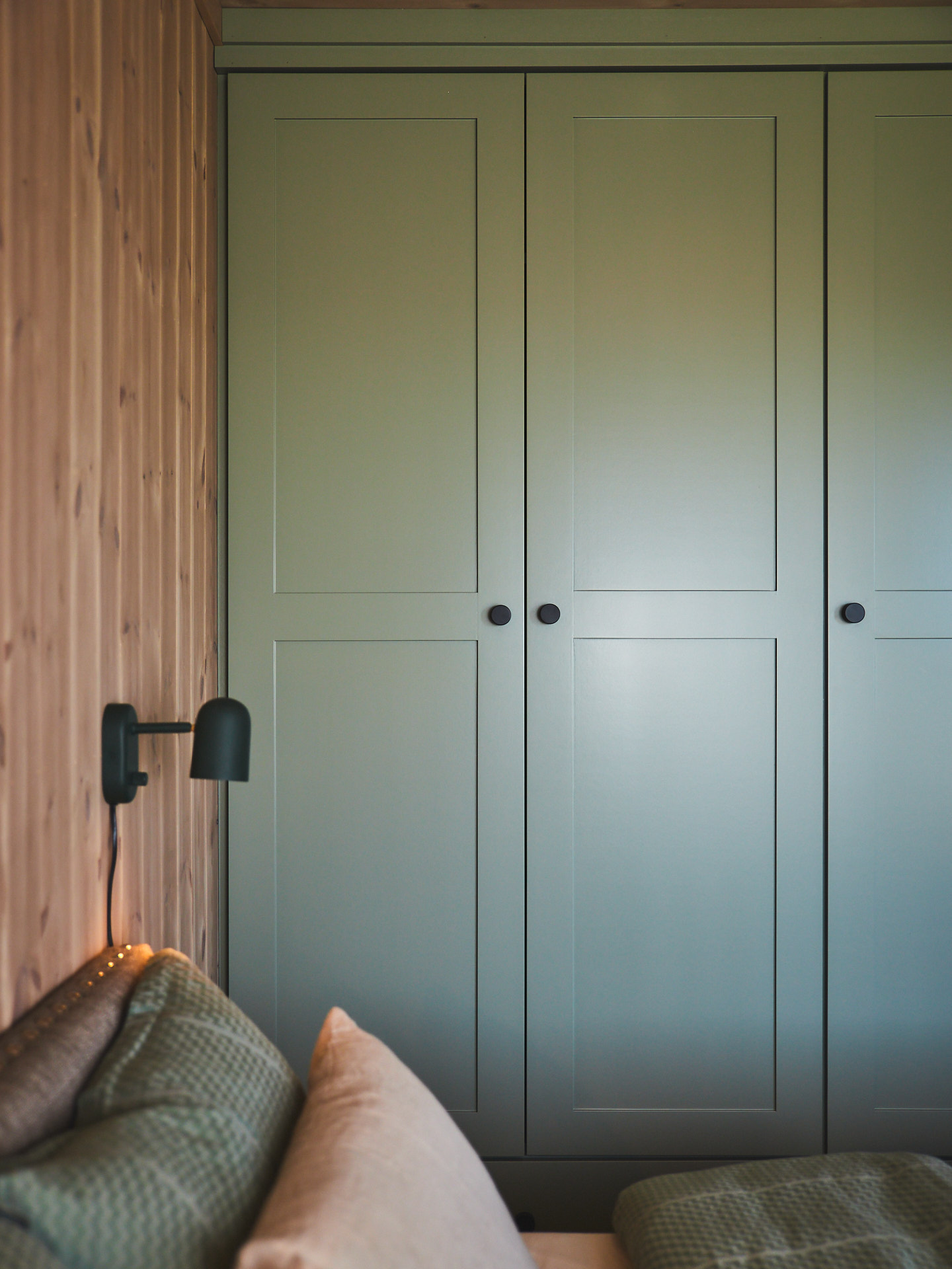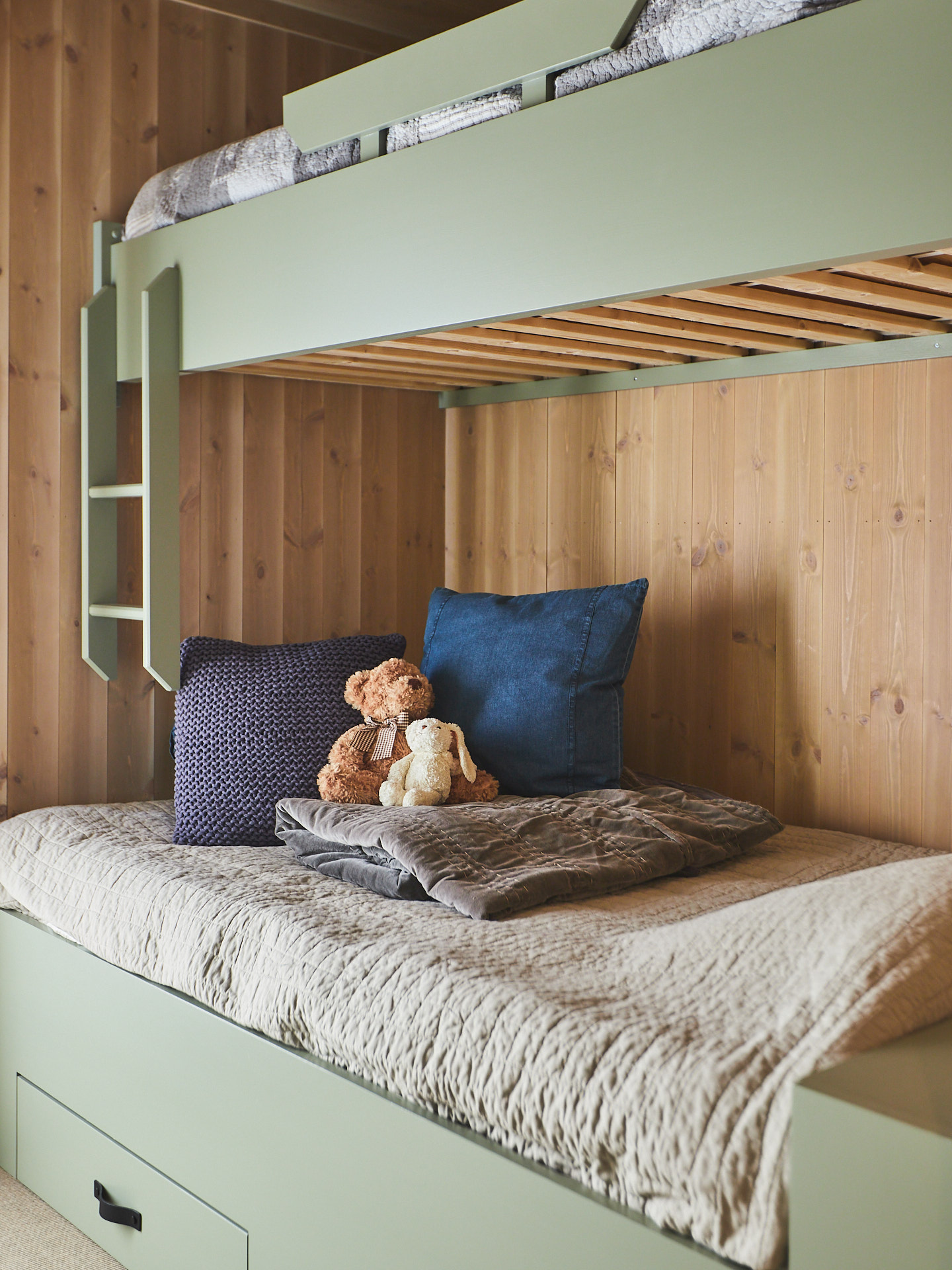 Servantskap med skuff og hylle. Dette er malt i fargen Green Leaf, som de andre innredningene i hytta.
