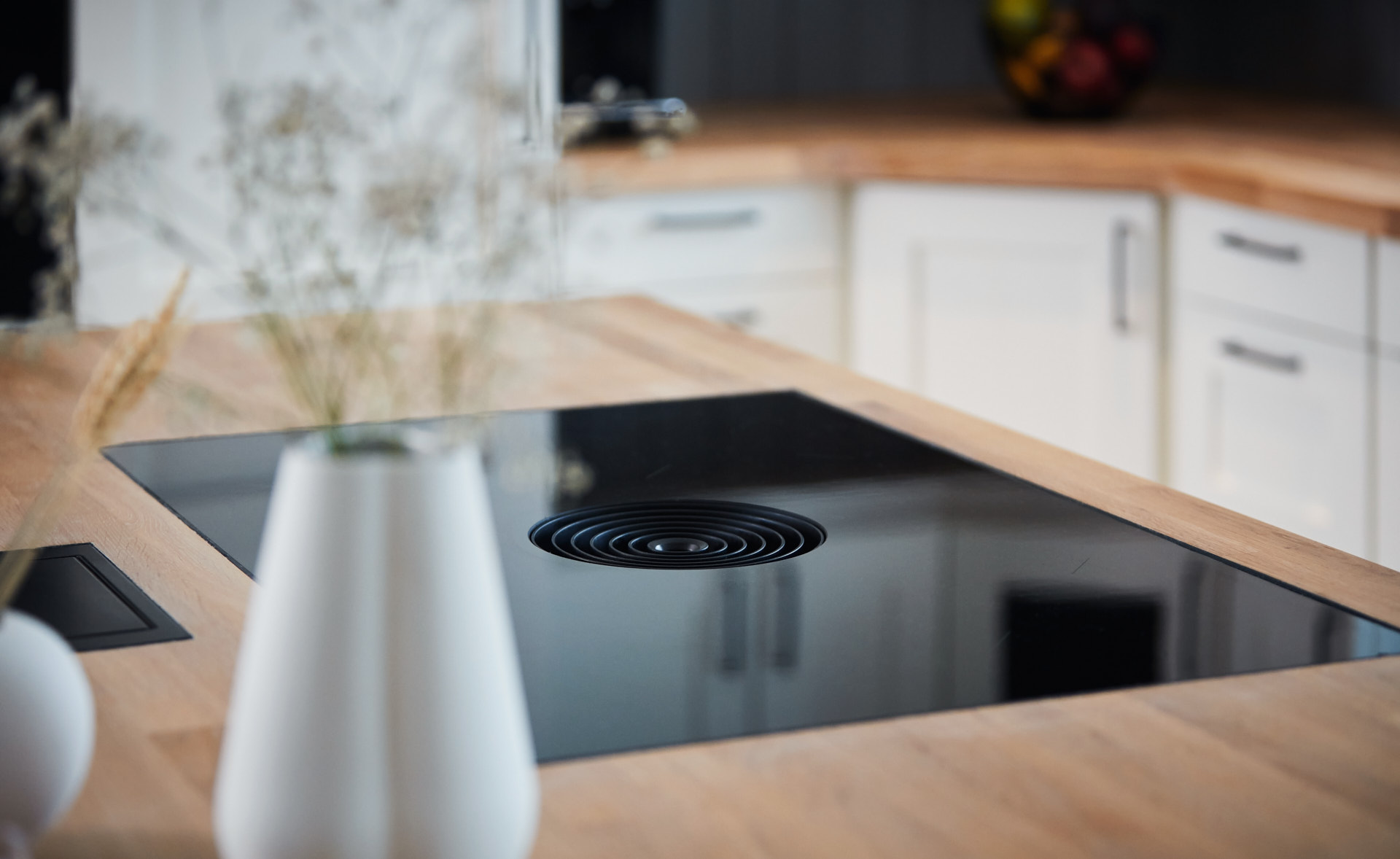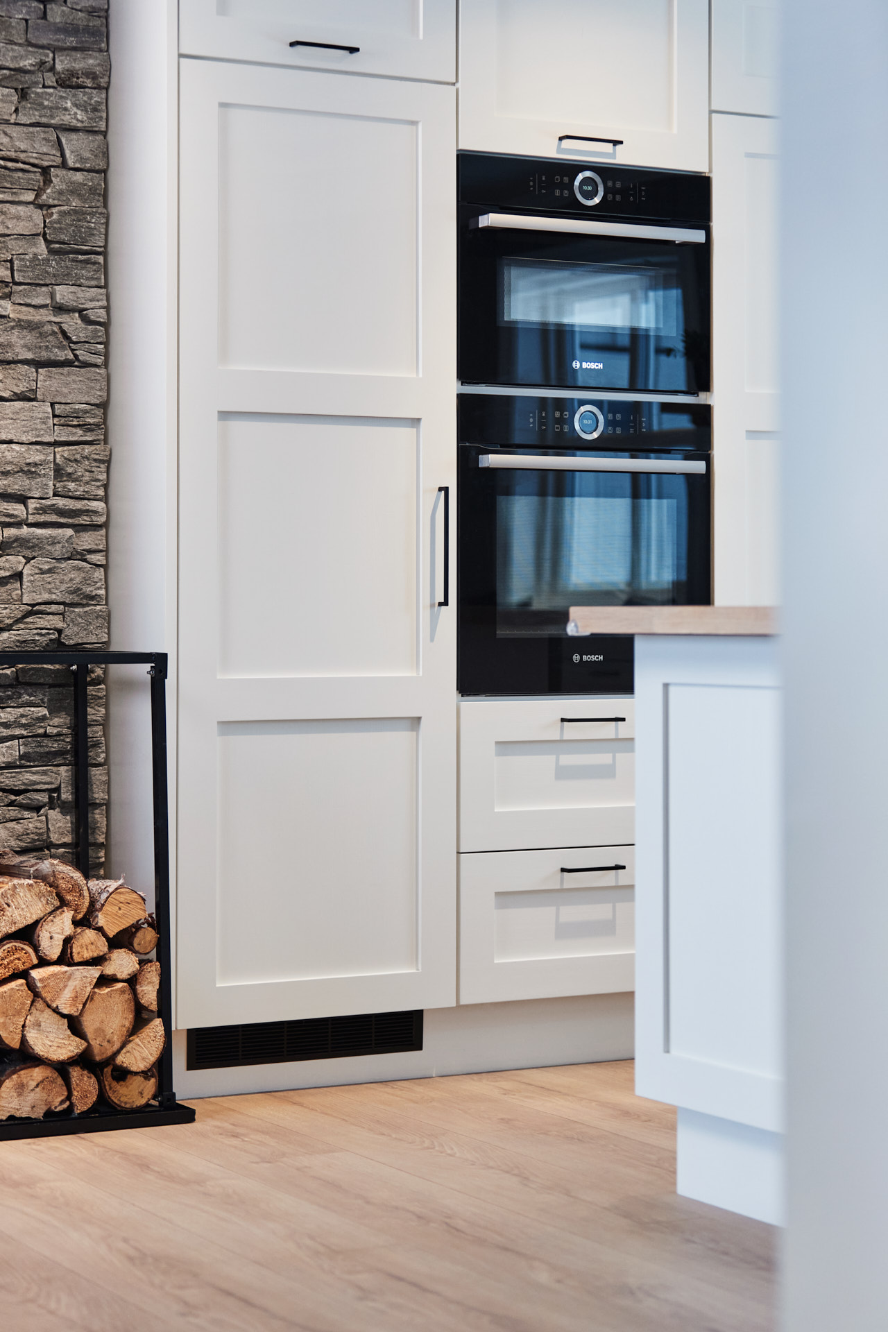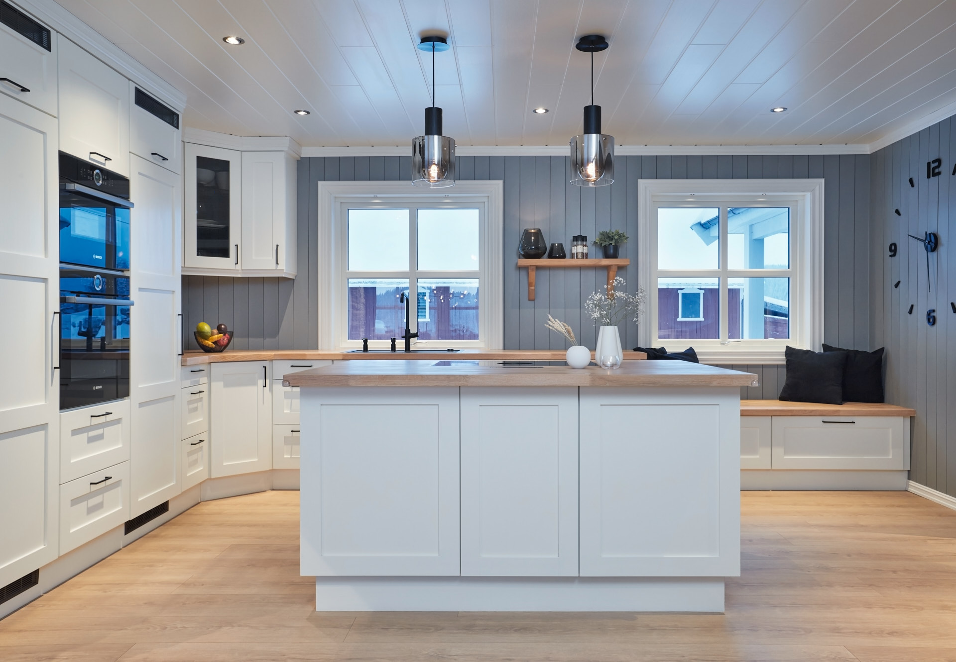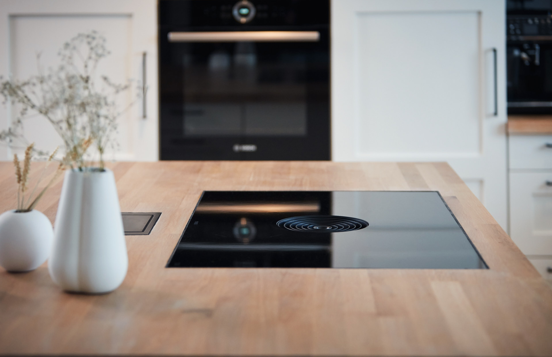 Kjøkkenet er utstyrt med hvitevarer levert av Bergro og består av produkter fra BORA og Bosch.