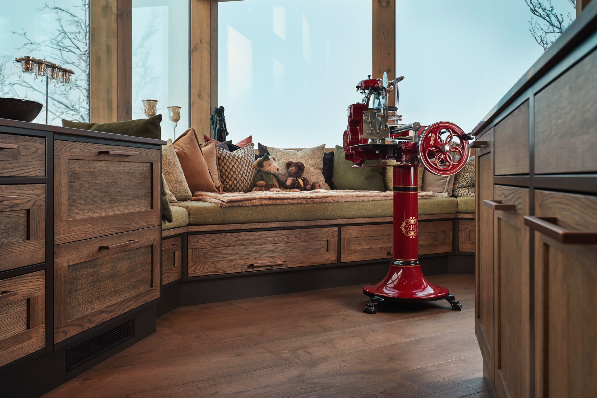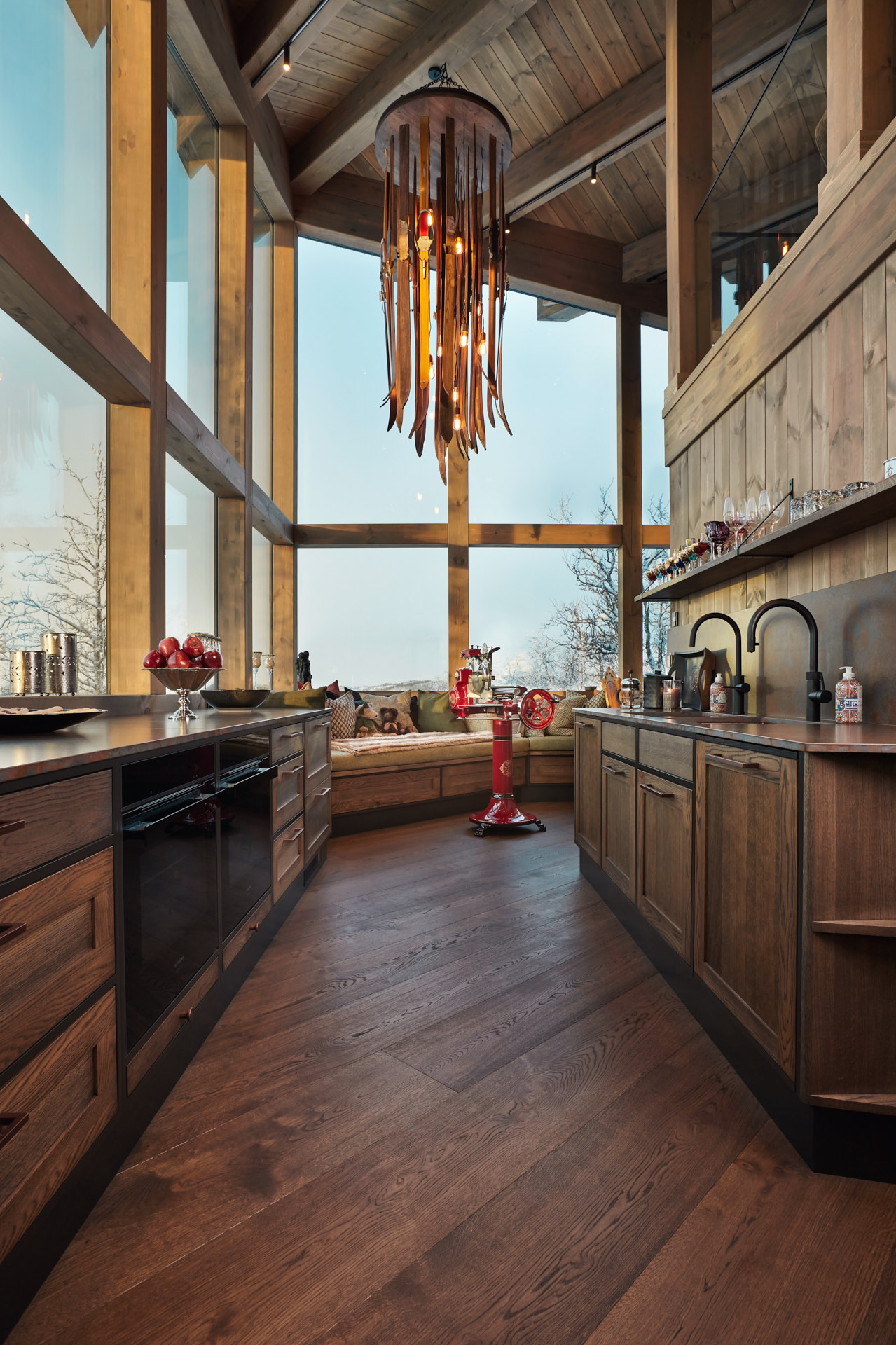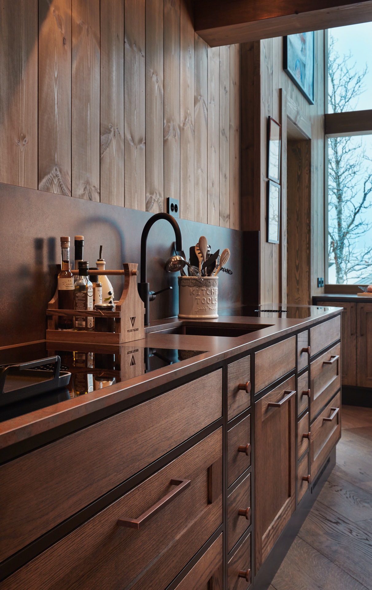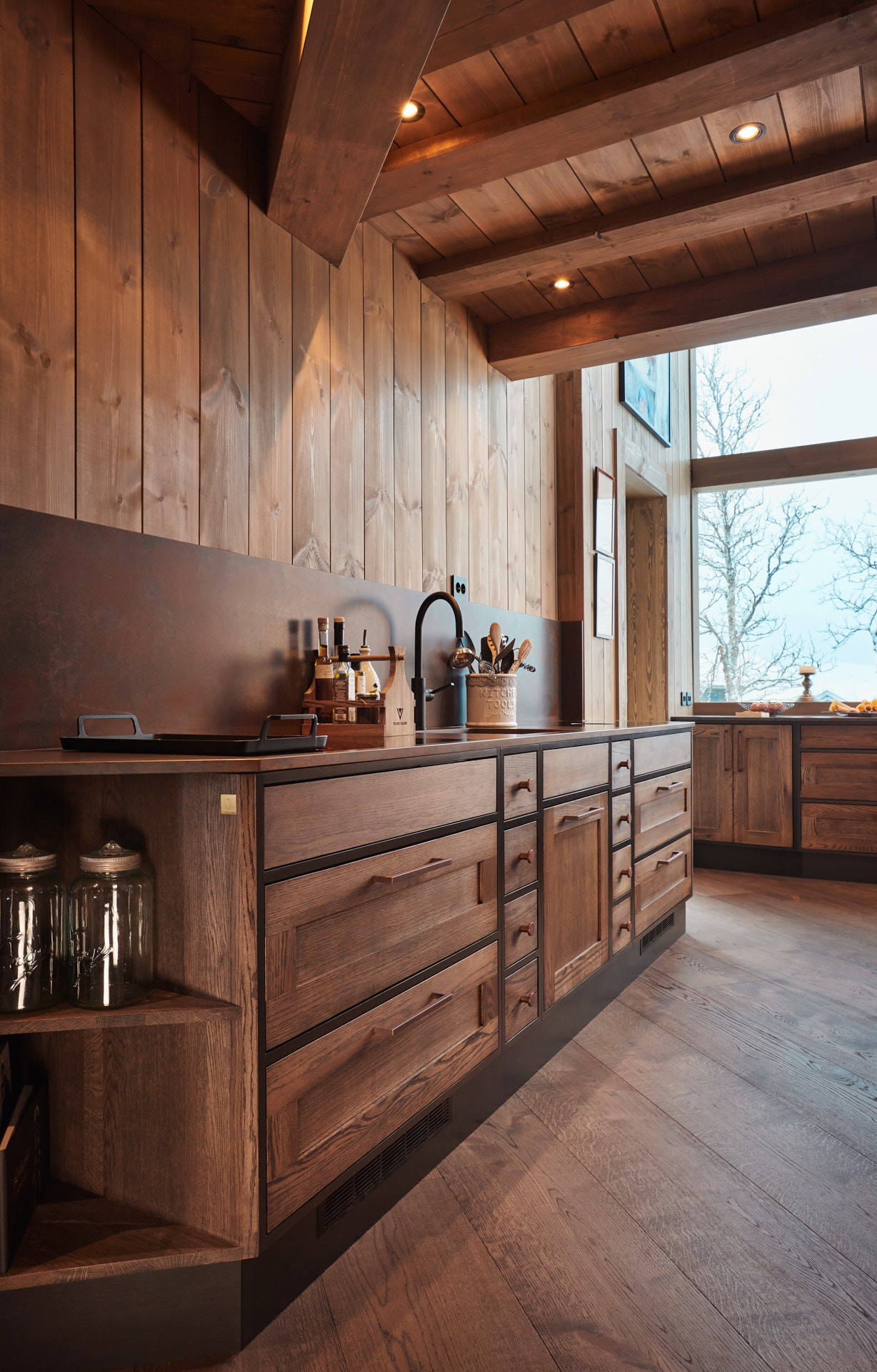 Et prosjekt med stor variasjon og spennende tilpasninger. I denne store hytta har vi levert innredning til alle rom. Hytta er bygget for å romme et helt eget matkonsept.