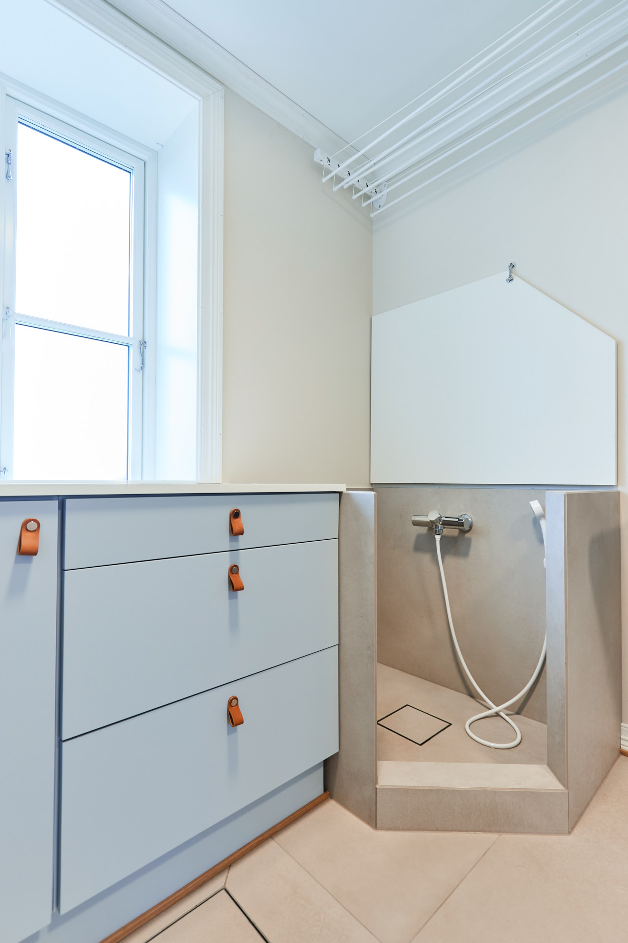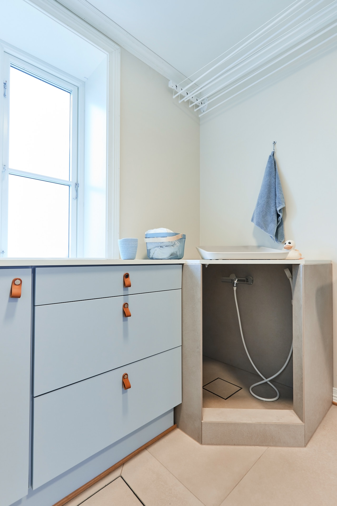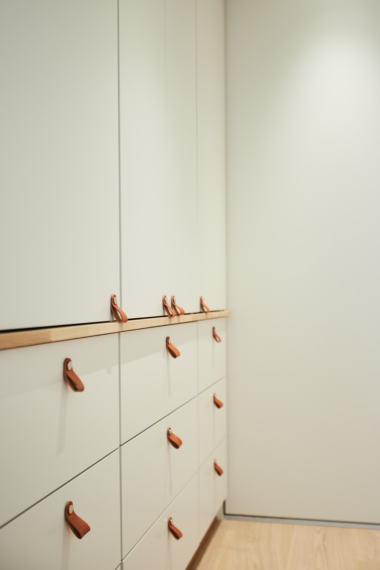 Her har vi laget innredning til kjøkken, stue, entré, vaskerom og garderobe. Lyse elegante flater er gjengangeren i dette prosjektet.