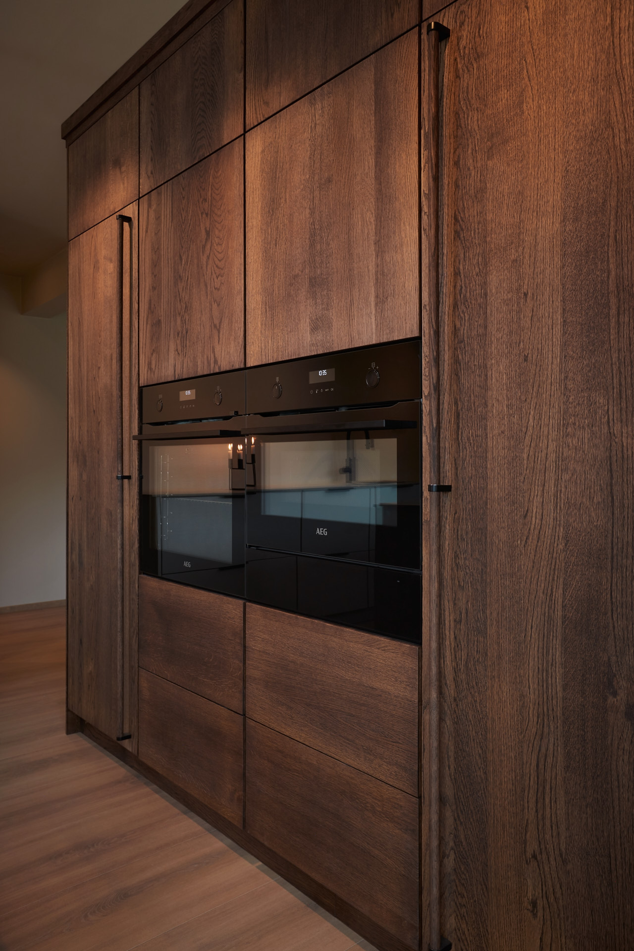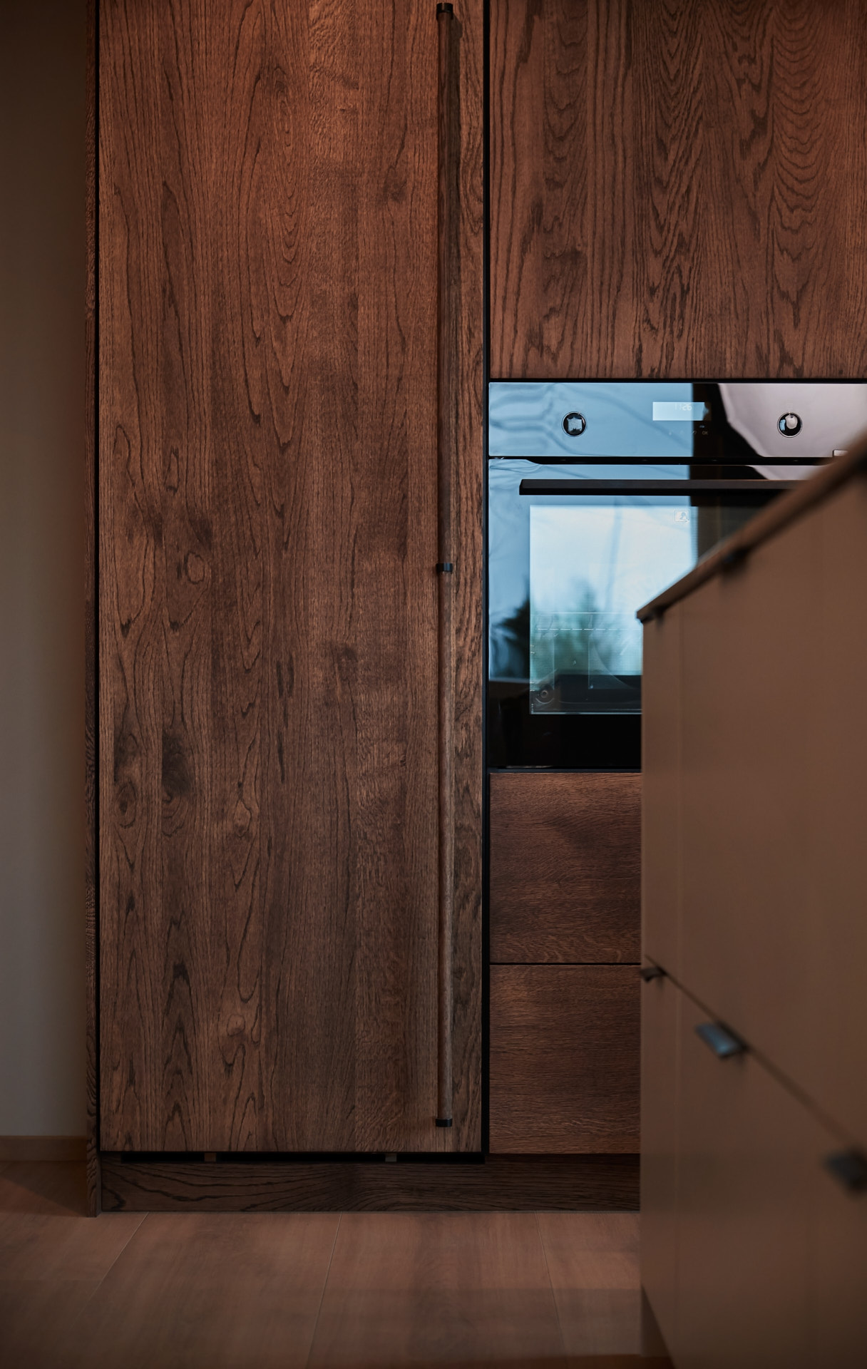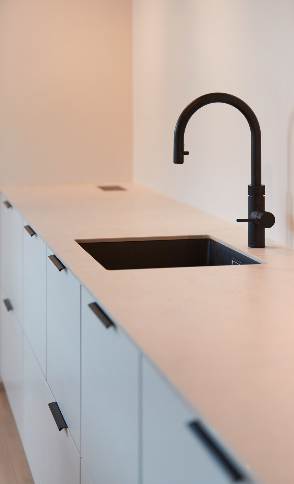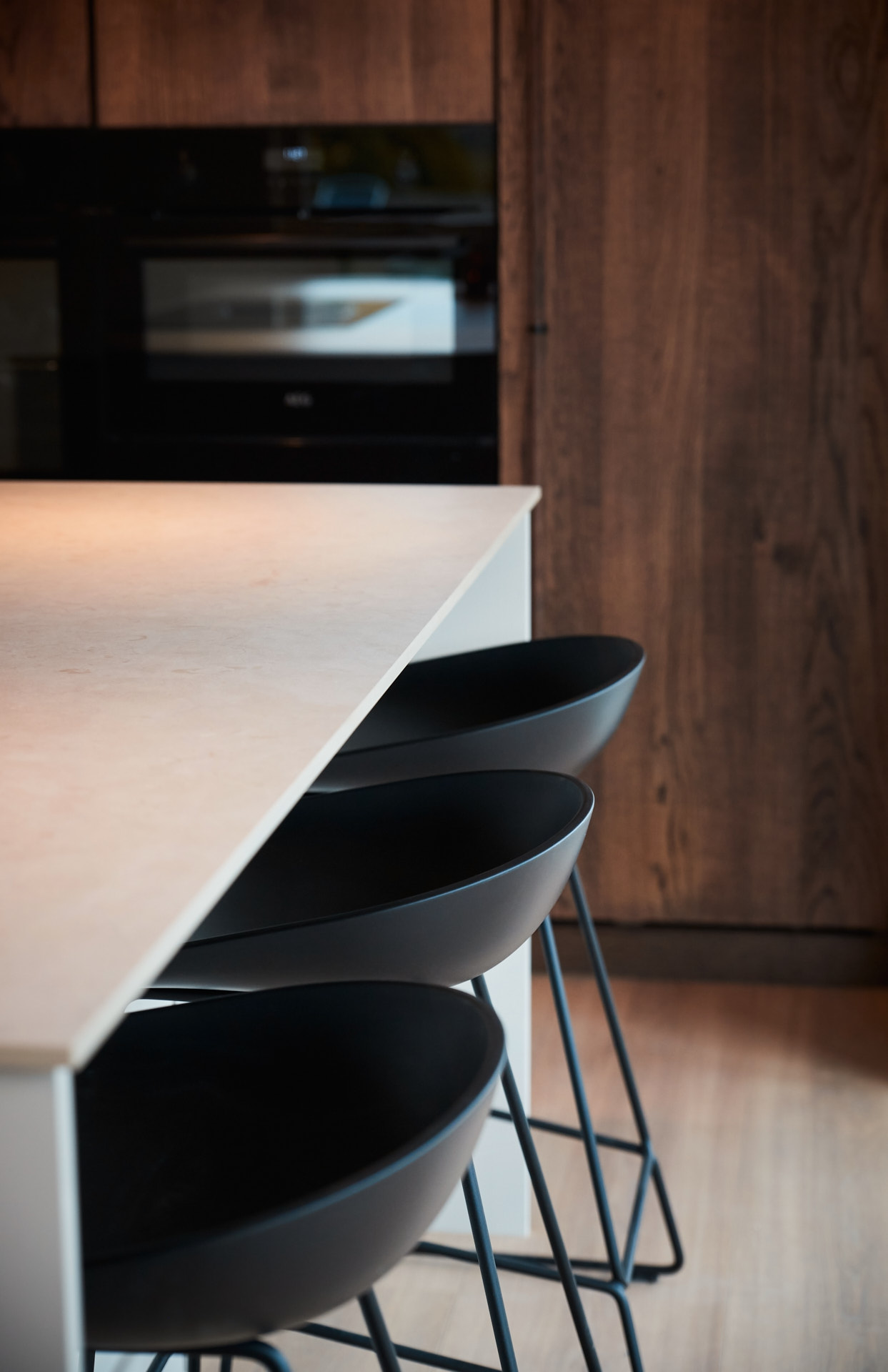 Moderne og minimalistisk kjøkken i lyse farger og eik. Et kjøkken som gir en følelse av oversikt og ro.